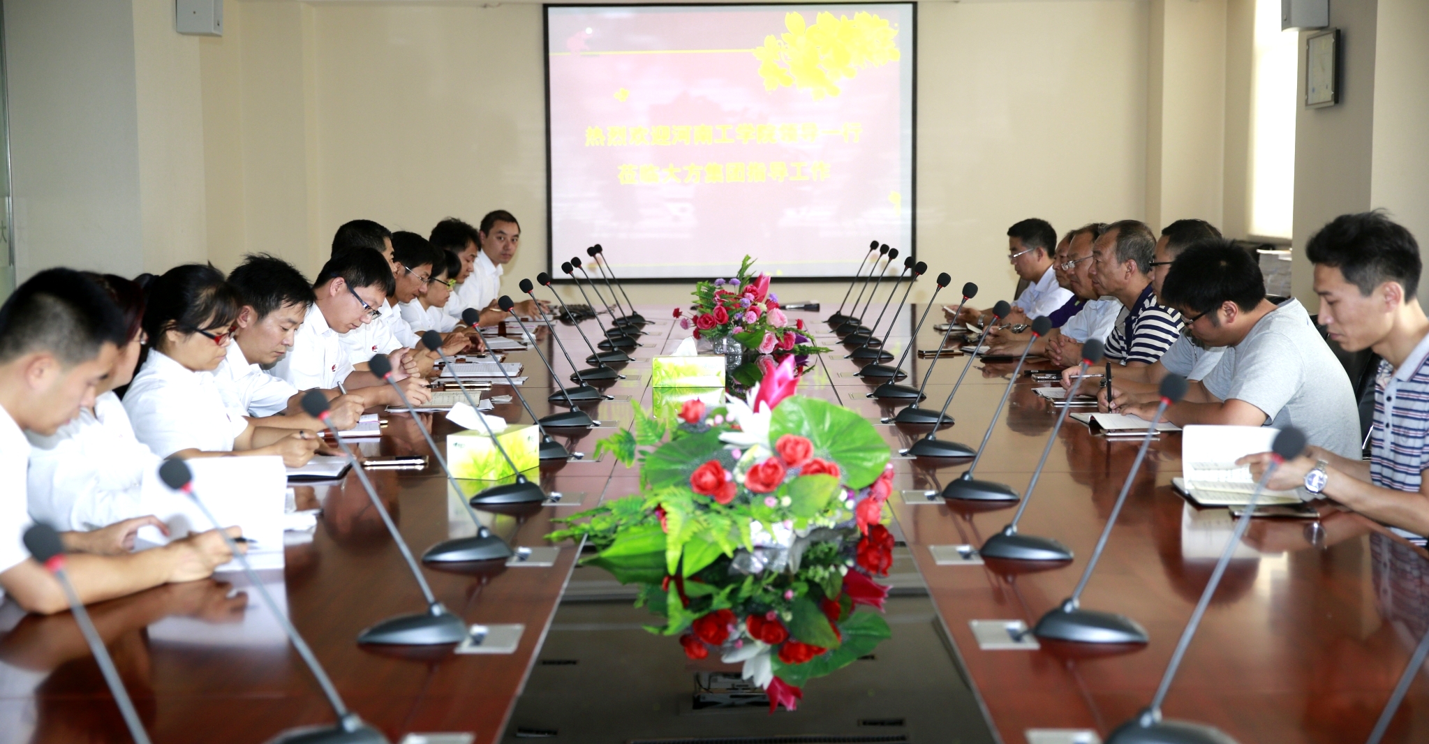 接下來,胡總向校方介紹了公司近年來的發(fā)展?fàn)顩r并坦言大方公司與河南工學(xué)院的合作已經(jīng)有了多年的歷史,對校企長期合作充滿了信心和期望。